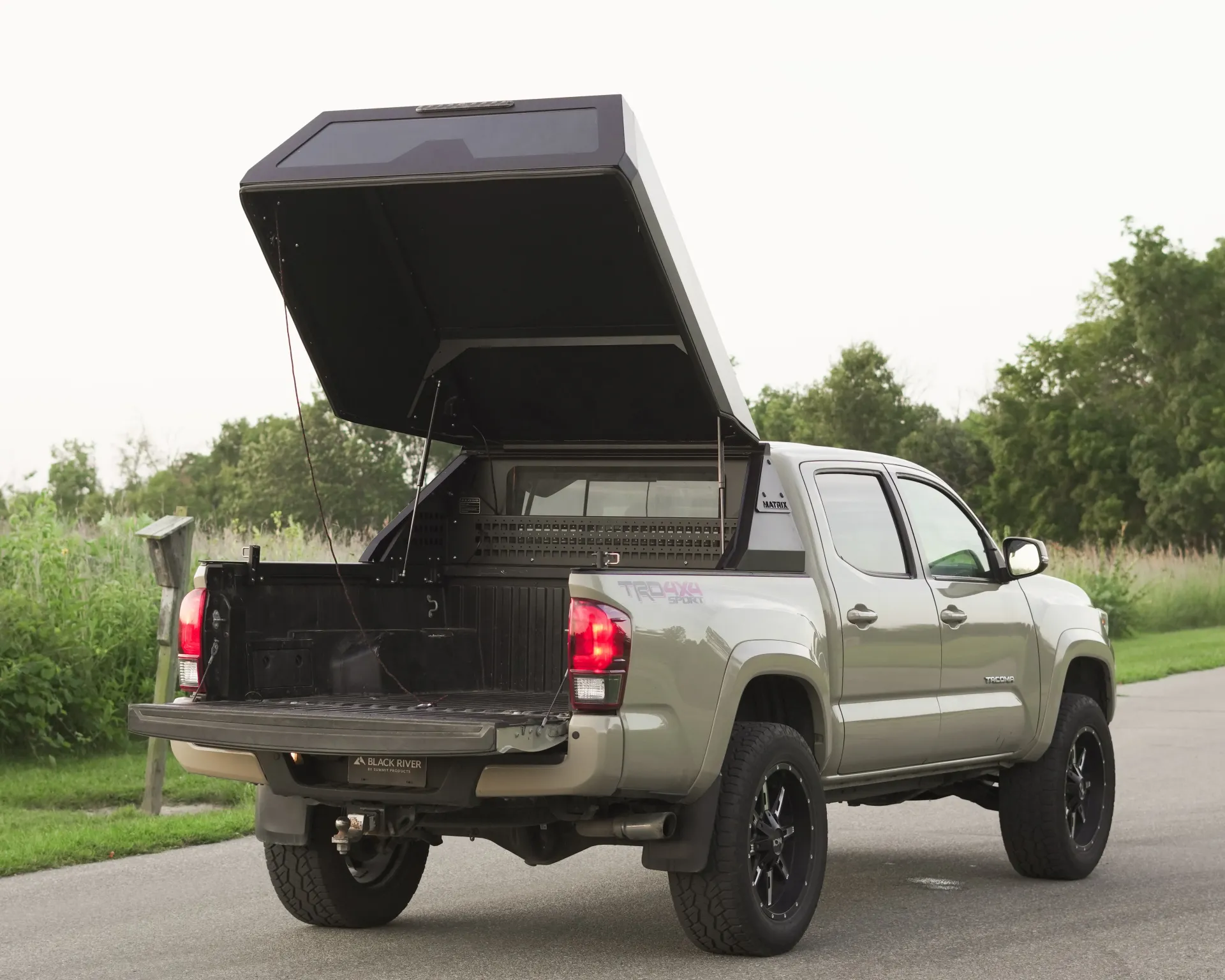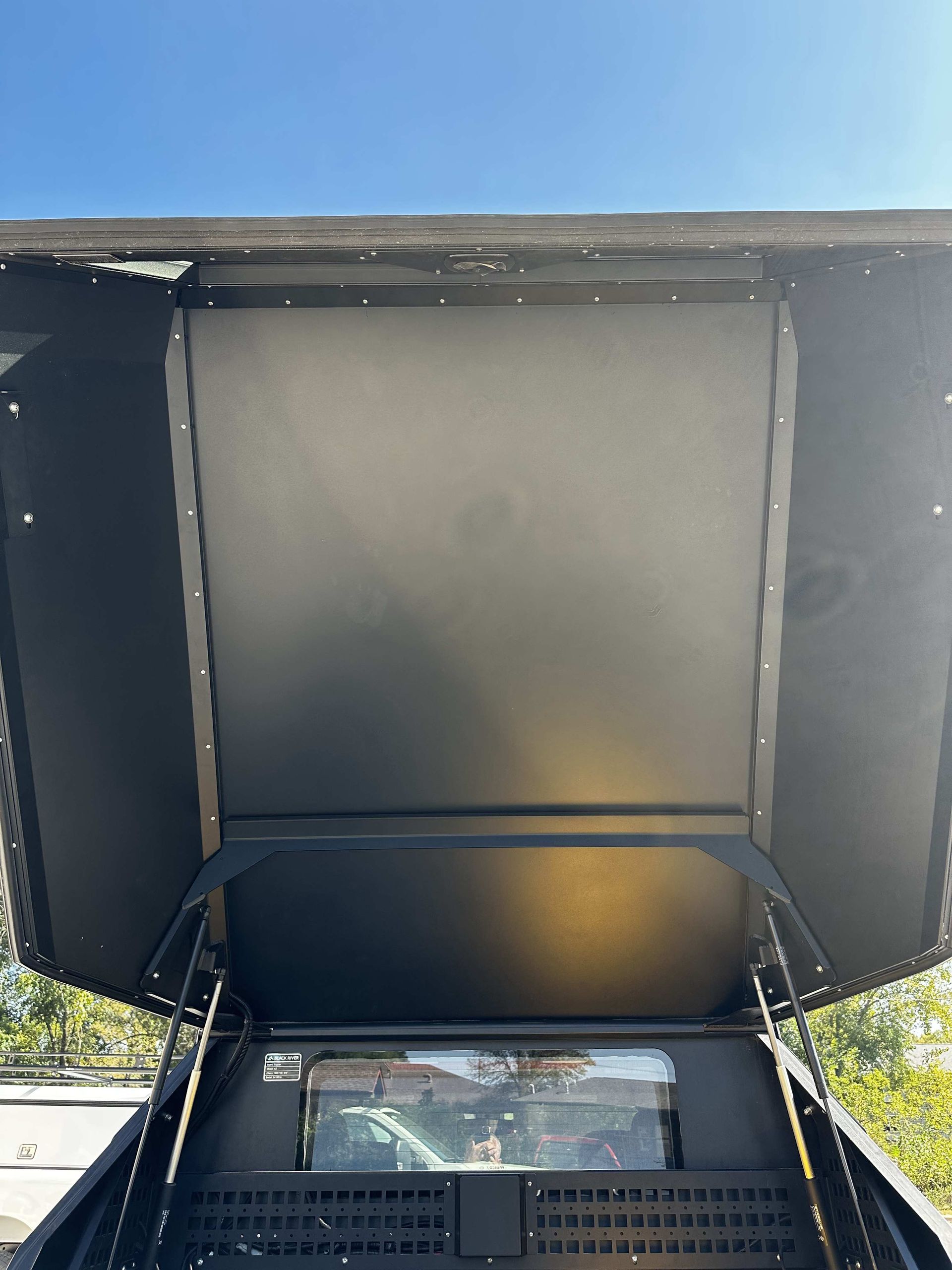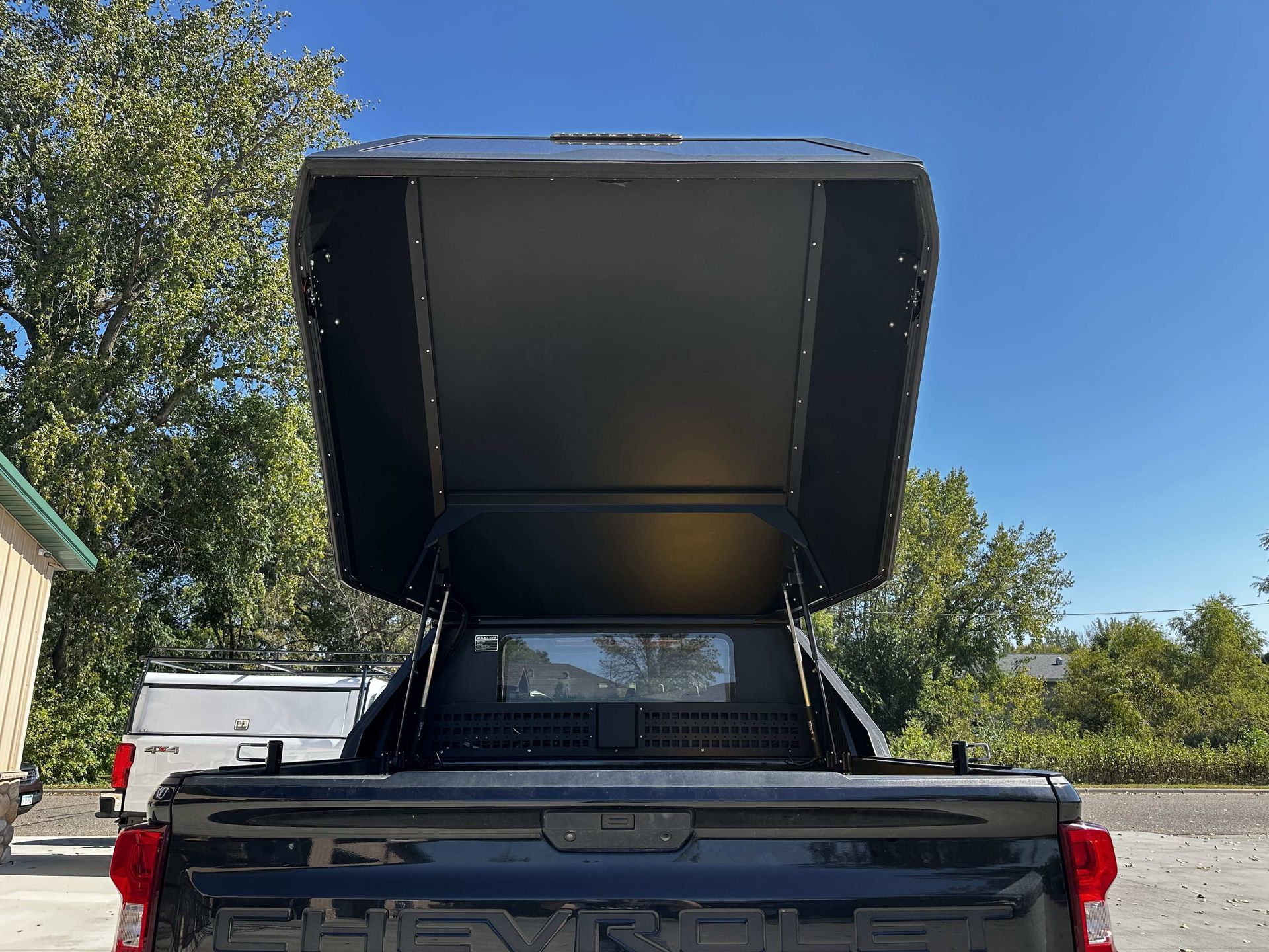 The Matrix Truck Toppers redefines versatility and style for today's truck owners, offering a perfect blend of traditional design and modern innovation. This double-walled aluminum topper features OEM quality gas struts, matte black UV protected powder coat paint, and DOT rated tempered glass. The Matrix has no handles to break or small hinges to fail.With our trademark opening mechanism, the Matrix GT ensures full accessibility to your truck bed while providing a secure and spacious solution for all your gear.