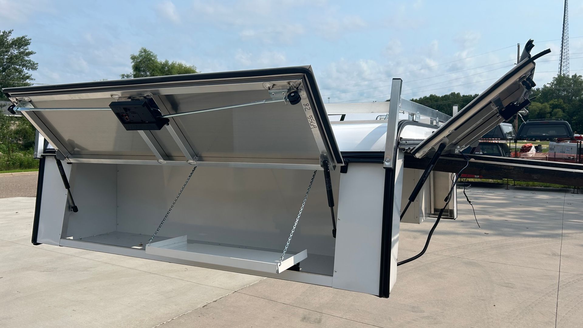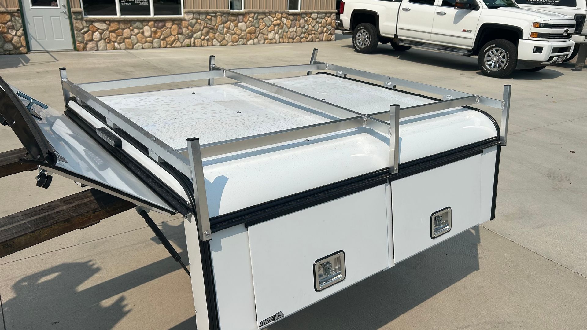 Price includes setting and clamping it on your truck or trailer. Add $125 if you’d like to have us do the wiring for the lights.